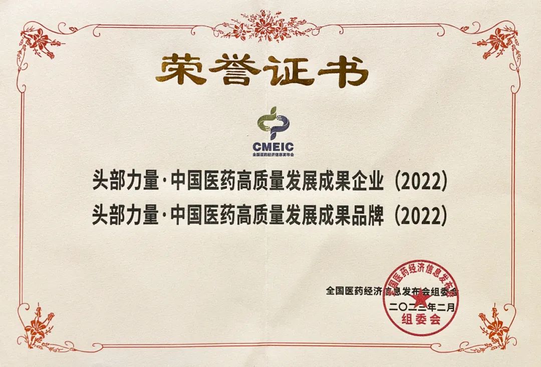 吳中醫藥榮獲“2022頭部力量-中國醫藥高質量發展成果企業及成果品牌”
