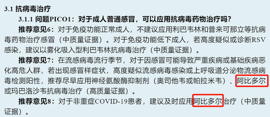 阿比多爾進入成人普通感冒診斷和治療臨床實踐指南(2023)