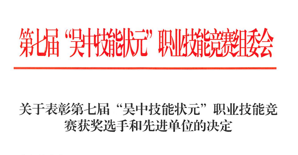 榮譽 | 公司員工在第七屆“吳中技能狀元”職業技能競賽中喜獲佳績