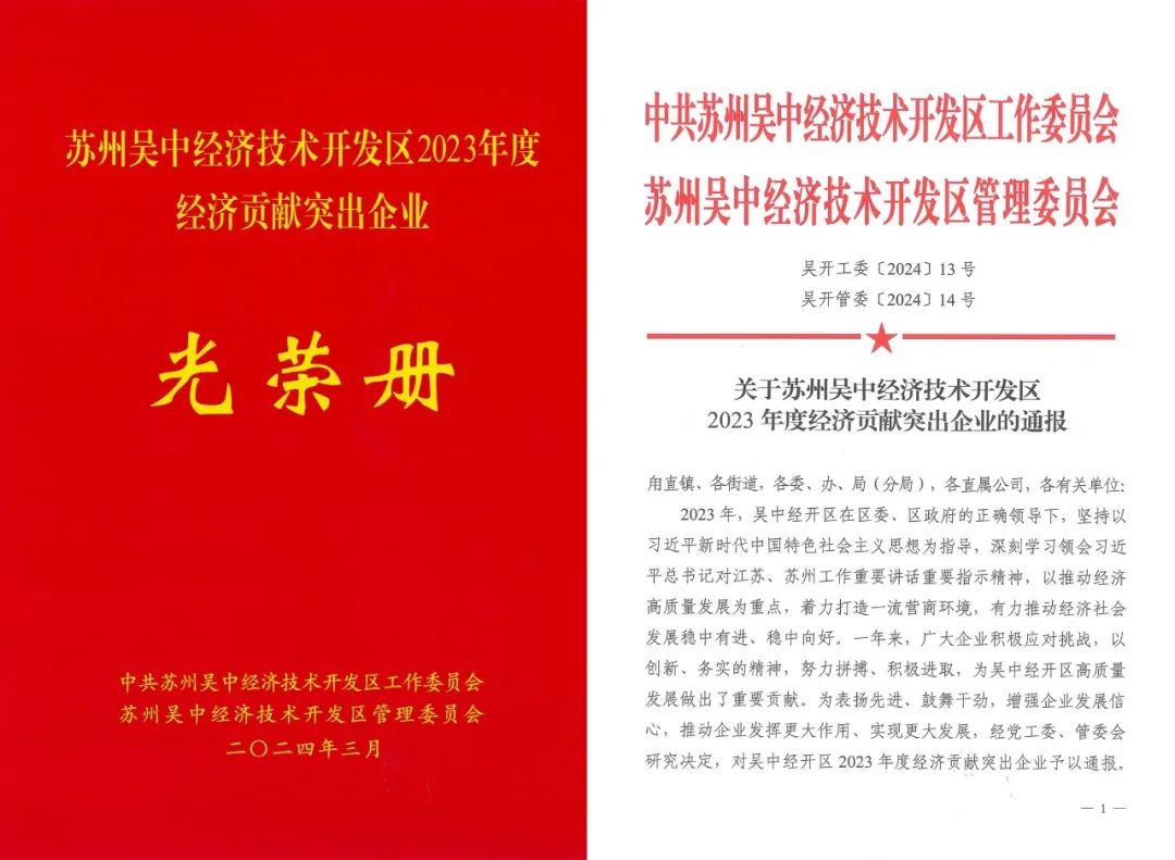 榮譽:公司獲評吳中經開區2023年度經濟貢獻突出企業
