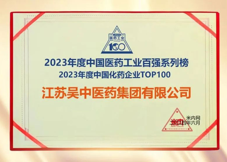 榮譽 | 吳中醫藥成功入選“2023年度中國醫藥工業百強系列榜單”