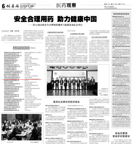 日前,《健康報》社主辦的第十二屆百姓安全合理用藥調查活動中,江蘇吳中醫(yī)藥集團的"芙露飲"匹多莫德口服溶液獲得“品質致勝獎”,最受臨床信賴品牌。該活動旨在進一步規(guī)范醫(yī)療機構和醫(yī)務人員藥物合理使用,提高公眾安全用藥意識。