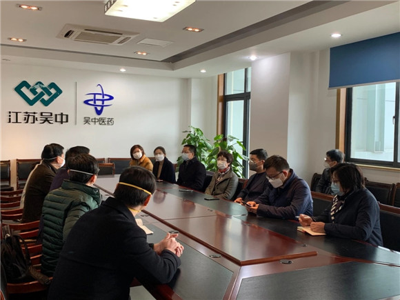 2月3日上午,吳中區委副書記、區長陳嶸帶領吳中經濟開發區黨工委副書記、管委會副主任顧玉琪,吳中經濟開發區黨工委委員、管委會副主任郁克銘,吳中經濟開發區招商局局長姚靜等領導到吳中醫藥進行走訪調研,了解公司在抗擊新型肺炎疫情特殊時期各項生產經營運行情況以及存在的困難和問題。