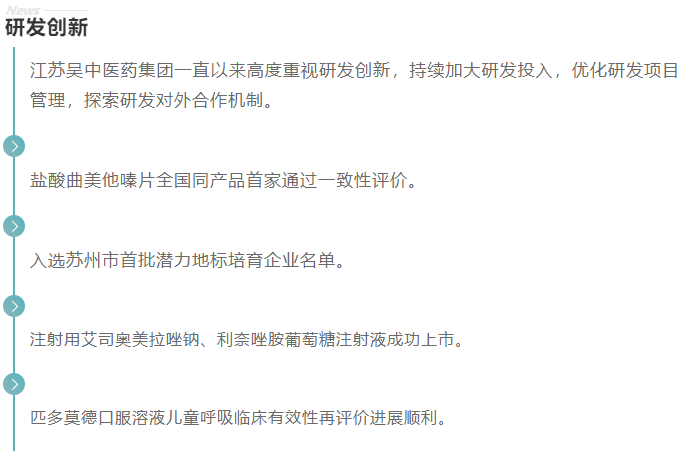根據蘇州市《市政府關于公布第三批蘇州市自主品牌大企業和領軍企業先進技術研究院建設企業名單的通知》,江蘇吳中醫藥集團有限公司入選蘇州市第三批自主品牌大企業和領軍企業先進技術研究院建設企業名單。