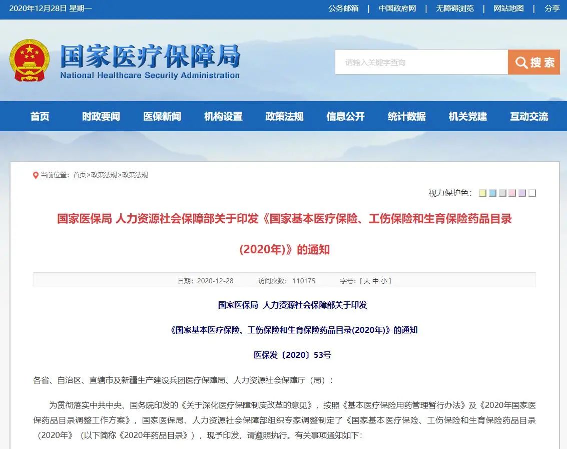 國家醫保目錄發布——吳中醫藥利巴韋林注射液進入目錄 日期:2020年12月29日