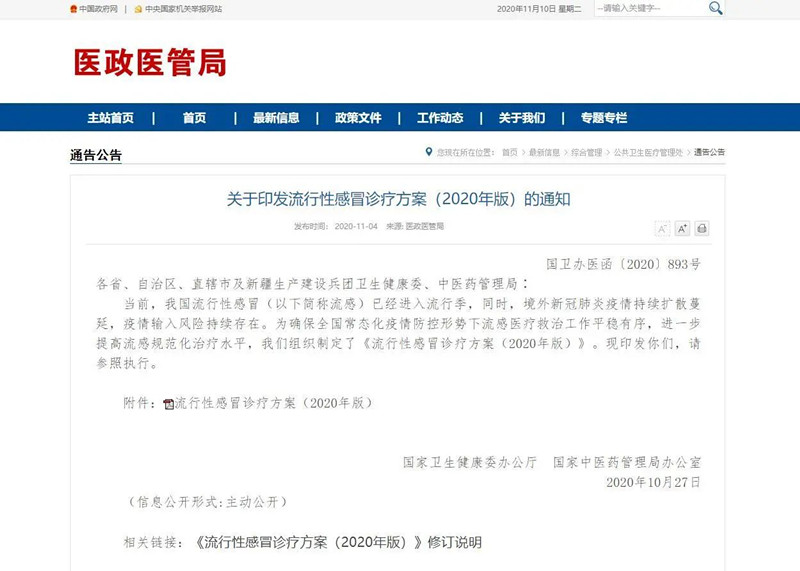 阿比多爾進入《流行性感冒診療方案(2020年版)》