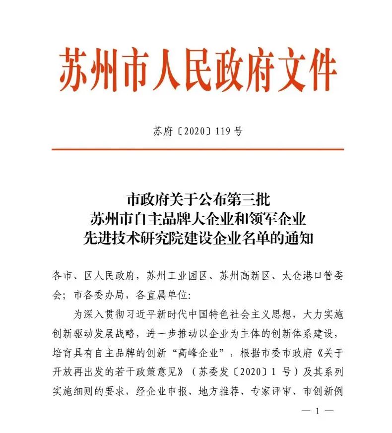根據蘇州市《市政府關于公布第三批蘇州市自主品牌大企業和領軍企業先進技術研究院建設企業名單的通知》,江蘇吳中醫藥集團有限公司入選蘇州市第三批自主品牌大企業和領軍企業先進技術研究院建設企業名單。(先進技術研究院是企業根據市場競爭及核心技術研發和儲備需要而獨立設立的創新載體,負責企業前沿性技術的規劃、研究和儲備,不斷提升企業和產業鏈核心技術水平和競爭力 ...