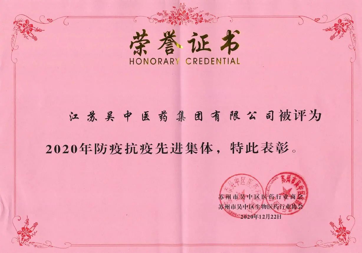 12月22日,在吳中區醫藥行業商會四屆五次暨吳中區生物醫藥行業協會二屆五次理事會上,江蘇吳中醫藥集團有限公司獲評“2020年防疫抗疫先進集體”。今年以來,吳中醫藥持續為疫情防控貢獻力量。 春節假期緊急調配員工,所有生產線滿負荷工作,全力保障抗疫藥品生產供應;并向蘇州市紅十字會捐贈價值100萬元的防疫藥品,支援新冠疫情防控...